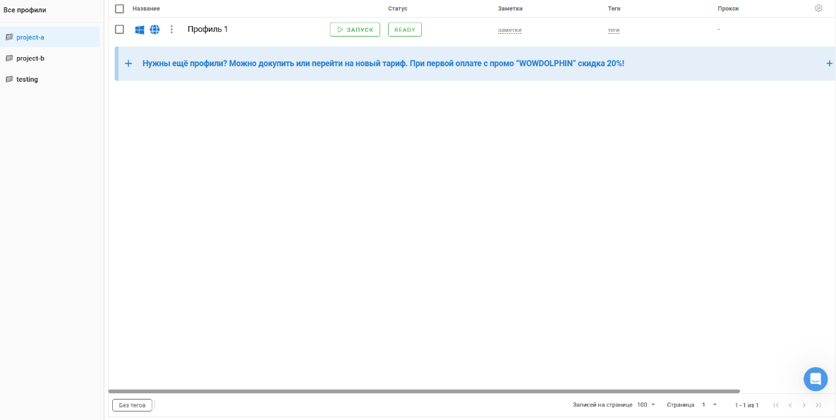 В бесплатной версии браузера Dolphin Anty доступно 5 профилей, свыше этого – при покупке тарифа от 777 руб. в месяц.