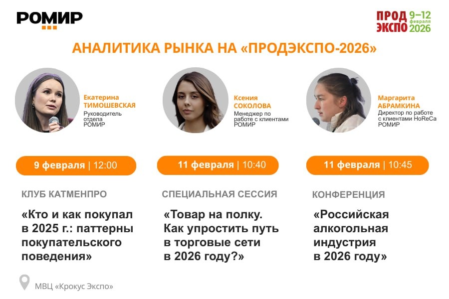 9 и 11 февраля эксперты РОМИР представят на «Продэкспо–2026» аналитику потребительского рынка