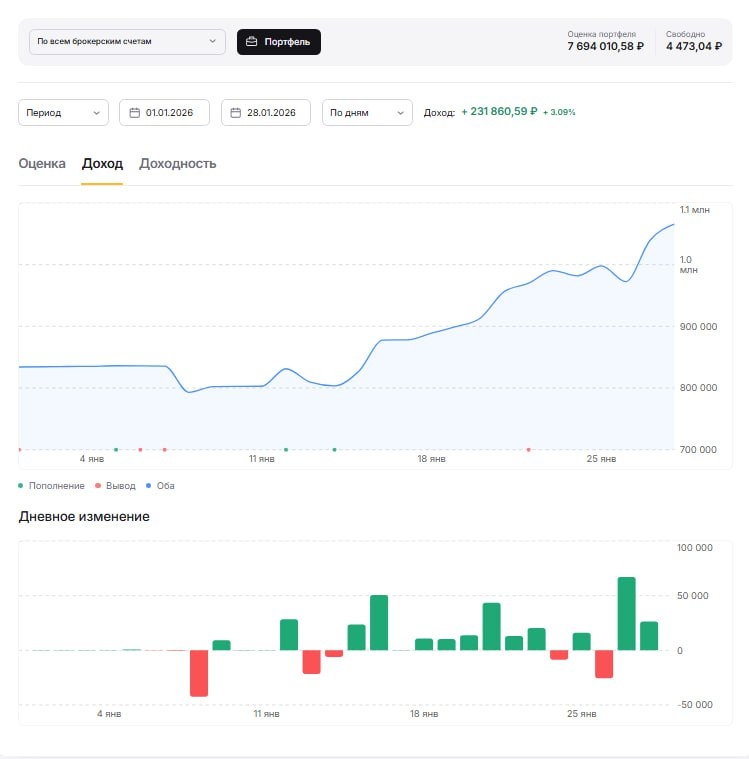 ! Похоже, открылось очередное окно возможностей для урегулирования. Рынок это чувствует и реагирует позитивно. Уже сегодня индекс МосБиржи вплотную подобрался к 2800 пунктов. Это сильная психологическая отметка. Если её уверенно преодолеть — дорога для дальнейшего роста может быть открыта. 📈 Что в моём портфеле? С начала года счёт вырос на +230 000₽ или +3,09%. Портфель следует за рынком. ⚡️ Мои действия: При таких темпах роста я сознательно притормаживаю регулярные пополнения. Новые покупки сейчас делаю только на поступающие дивиденды и купоны. Фиксирую прибыль и повышаю долю кэша. 🚨 Важный момент: Все, кто ждут идеального момента для входа, рискуют его так и не дождаться. Рынок редко даёт идеальные точки. Дисциплина и стратегия важнее попыток поймать дно. А что думаете? Чувствуете разворот?