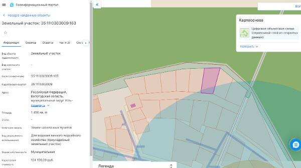 Название: Земельный участок с кадастровым номером 35:11:0303009:163 площадь 1450 по адресу Российская Федерация, Вологодская область