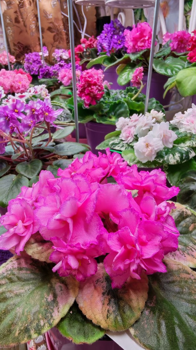 ! Да, цветы искажены лампами Uniel SPSR, но большую часть времени мы с мамой видим наших красавиц именно такими! Позируют фиалочки: 1. РС-Бомонд с шикарной кроновой перстолистностью и удивительными розовыми цветочками с вишневой каймой-напылением по краю лепестка. 2. Dn-Lorien, с тёмной кудрявой листвой и волшебными белыми цветочками с зелёной каймой. 3. Утнонченный ЛЕ-Эльфийский Сад с аккуратной темнолистной розеточкой и крупными сиренево-голубыми цветами с белой каемочкой, которая лучше всего проявляет себя в прохладных условиях. 4. Buckeye Seductress, который многие сравнивают с цветами голубой гортензии. Дополняет образ шикарная розетка с окаймляющей пестролисиностью. Изначально этот красавец был голубым, однако, лампы с красным спектром делают его сиренево-голубым, а пестролисиность приобретает удивительную розовинку. Эксперимент показал, что если убрать сиреневую розетку с розовой пестролисиностью с ламп, розовая пестролисиность пропадает, а цветы становятся голубыми.