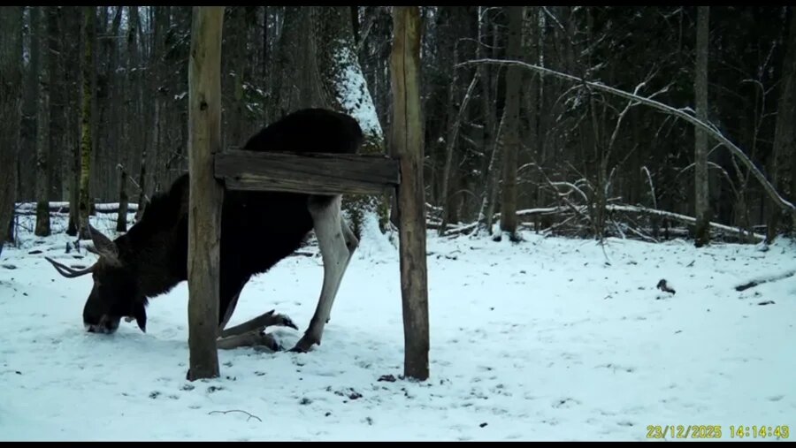 Запись с фотоловушки в среду, 28 января, опубликовал заповедник «Калужские засеки». - Забавное видео запечатлели фотоловушки заповедника, - прокомментировали в заповеднике. - У лося короткое туловище, широкая грудная клетка, длинные ноги. При этом передние ноги немного выше задних. Чтобы достать до земли, лосю приходится вставать на колени.