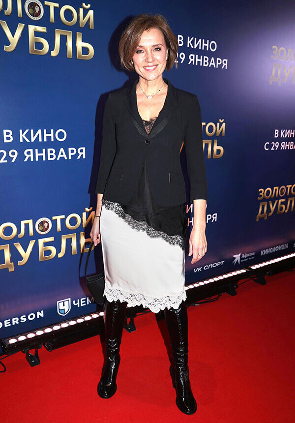 Сезон зимних кинопремьер в столице продолжил вечер, посвященный фильму «Золотой дубль». Закрытая презентация картины, проходившая в киноцентре «Мосфильм», собрала пул именитых гостей, среди которых были звезды экрана и сцены. Особое внимание — их нарядам. Неотразимая Ксения Алферова выбрала женственный аутфит в черно-белой гамме. Шелковый асимметричный топ с кружевной отделкой и белая шелковая юбка с ажурной отделкой — получилось кокетливо и не без вызова. Анна Ещенко тоже выбрала черный и не стала разбавлять его другими цветами. Бархатный жакет с запáхом и тонким пояском в сочетании с классическими, чуть зауженными брюками выглядит сдержанно и элегантно. Крупные сверкающие серьги — удачный акцент! Ольга Петрикова отметилась на премьере в элегантном бежево-черном аутфите. Приталенный жакет с широкими лацканами и объемными плечами она дополнила узкими брюками и украсила крупной брошью. Черные кожаные сапоги добавили драйва, а стильные аксессуары — лоска. Необычный цвет и оригинальный кр