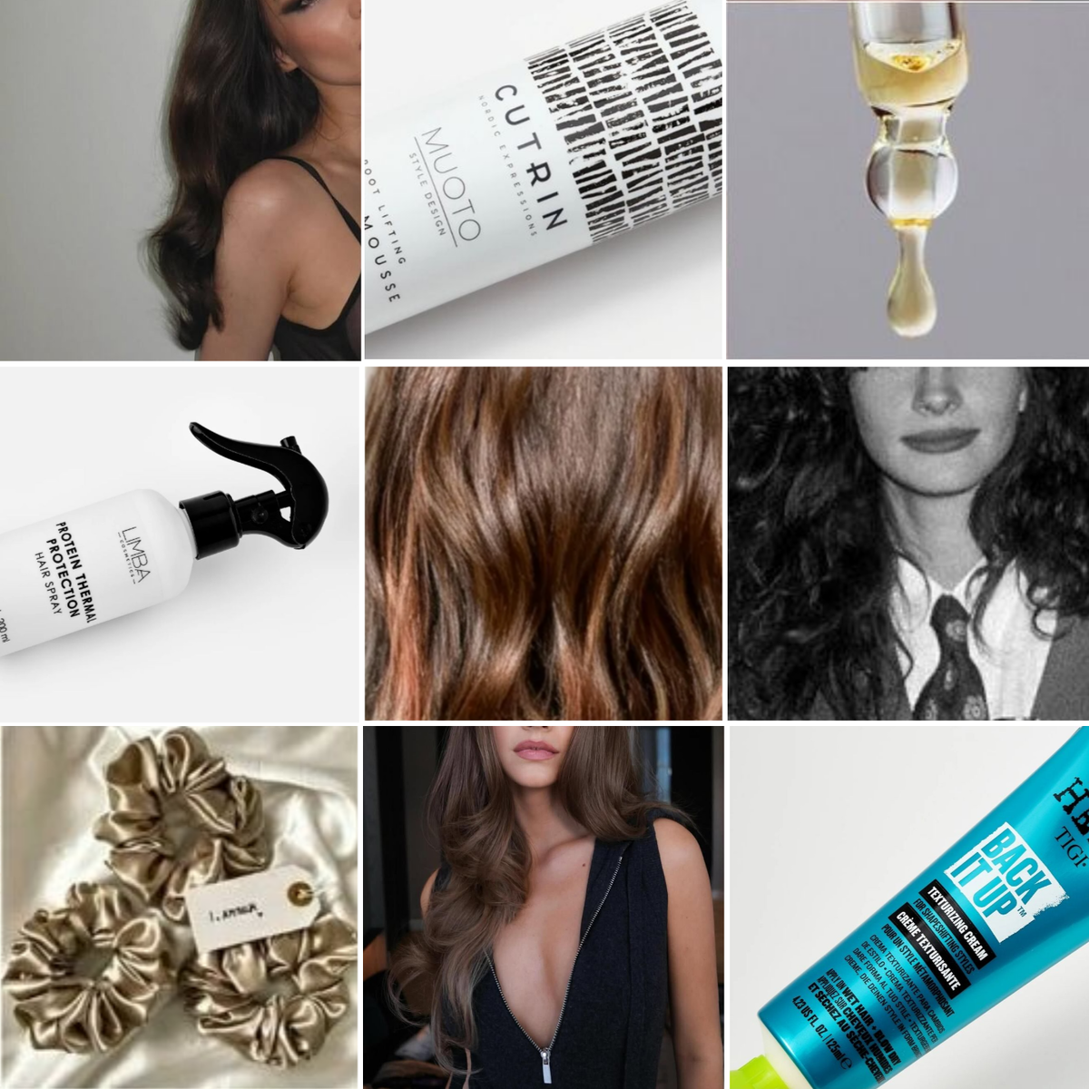 Термозащита (спрей, крем, сыворотка): Обязательный этап перед использованием фена, утюжка или плойки. Не дает фиксации, но создает невидимый барьер, защищающий волосы от высоких температур.