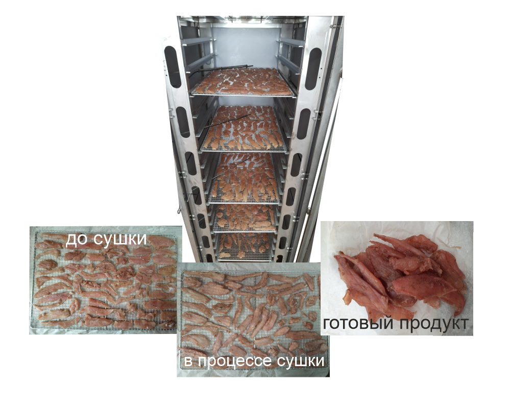 Рассчитали себестоимость и прибыль закусок из мяса птицы и говядины, приготовленных в сушилке "СУШИЛЫЧ", а также окупаемость сушильного шкафа. Идея: вы создаете оригинальный продукт, которого ни у кого нет, он стоит 300-500 рублей порцию, а его реальная себестоимость – 140 руб за 100 гр. Инвестиция – 195 000 – 500 000 (в зависимости от модели сушилки) Загрузка/Производительность: 60/24 кг/цикл Продажа: 2000-5000 руб/кг Выручка: 48 000 руб Прибыль в день: 20 800 руб и более, в месяц – 624 000 Если вы продаете меньше, например 10 кг в день, прибыль – 8000-18000 в день, в зависимости от наценки. 1. Джерки из говядины. Загрузка сушильного шкафа «СУШИЛЫЧ» - 60 кг Усушка в среднем составляет 60-70%, выход готового продукта около 24 кг Время сушки – 12 часов, расход электроэнергии около 11 кВт Статья расхода Мясо, оковалок говяжий – 750 руб/кг Маринад и специи – 100 руб Электроэнергия – потребление до 3 кВт (по опыту 1 кВт) – цикл 12 часов – 12кВт (стоимость различна для разных регионов),