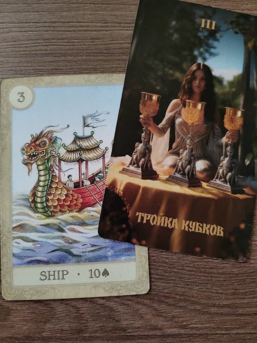 Путешествие к Радости: Корабль в Ленорман и 3 Кубков в Таро