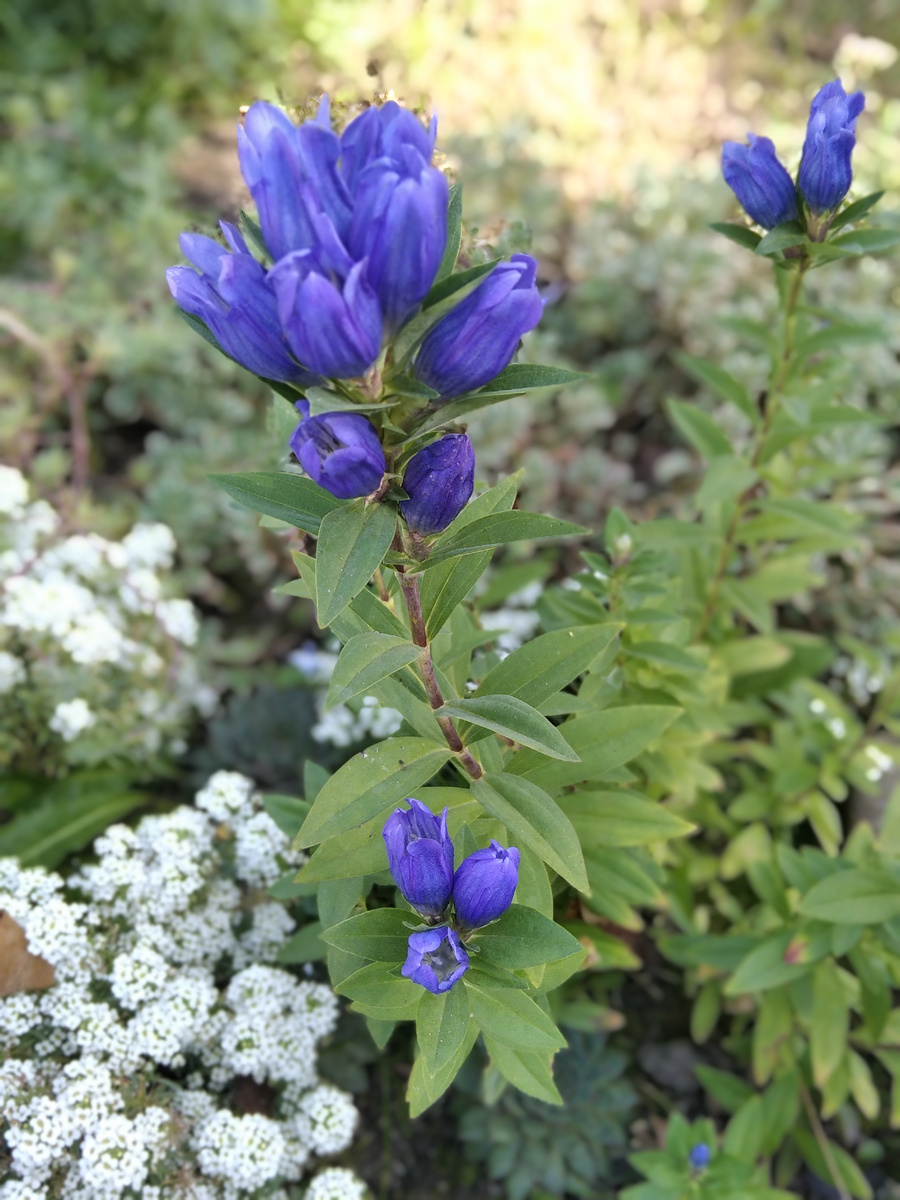 Кто не мечтал увидеть в своём саду ярко-синюю горечавку бесстебельную? Я мечтала. И покупала это растение в разных местах, но всё было напрасно. Не приживались они у меня никак. Сложность ещё и в том, что интернет-магазины продают сорта с красивыми названиями и очень красивыми картинками непонятной видовой принадлежности. Единственное растение из "Русского Огорода", которое у меня не погибло, в результате оказалось совершенно не похожим на горечавку бесстебельную. Во-первых, это высокий куст. Во-вторых, цветки не колокольчатые, а бокаловидные. В третьих, зацветает в сентябре. Пришлось искать дальше. Следующая горечавка приехала ко мне из Ленинградской области от Светланы Евгеньевны. Не то чтобы она совсем бесстебельная, но стебли лежат на земле, поэтому выглядит как почвопокровник. Зацвела она в конце июля, и цветки один за другим раскрывались весь август и часть сентября. Эту горечавку я назвала летней в отличие от первой, осенней. Цветок колокольчатой формы, как положено. А нас