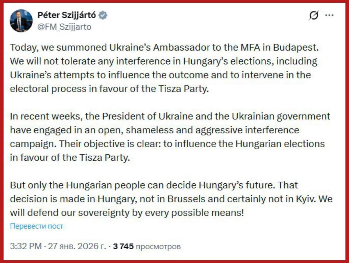‼️Сийярто обвинил Зеленского в ведении «бесстыдной» и «агрессивной» кампании вмешательства в предстоящие выборы в Венгрии