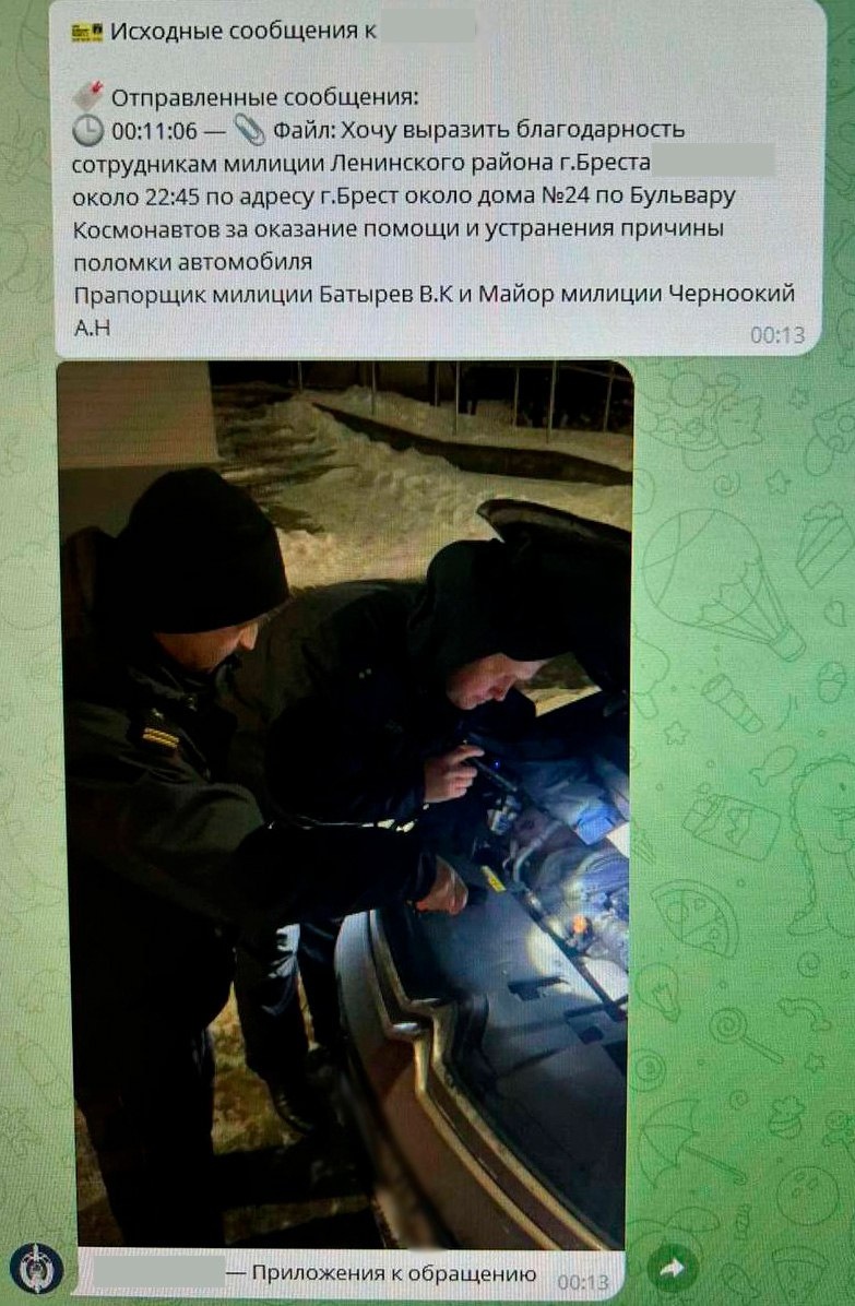 #милициябеларуси #мы_всегда_рядом 📣На территории Брестской области уже более месяца успешно функционирует очередной инструмент борьбы с правонарушениями - чат-бот Министерства внутренних дел «Мы всегда рядом». 🟢Благодаря этому проекту жители Брестчины могут в круглосуточном режиме даже в анонимной форме сообщить о происшествиях, правонарушениях и не только. Посредством сообщений, поступающих в чат-бот, граждане также благодарят правоохранителей за оказанную помощь. Так, автор одного из обращений выразил благодарность сотрудникам милиции Ленинского района г. Бреста прапорщику милиции Батыреву В.К. и майору милиции Черноокому А.Н., которые в вечернее время помогли устранить неполадки в заглохшем автомобиле горожанина. 🚔Сотрудники милиции нацелены на оказание помощи гражданам! ☝️❗️Если вы попали в затруднительную ситуацию или стали свидетелем правонарушения, сообщите об этом по телефону 1️⃣0️⃣2️⃣ или в чат-бот МВД "Мы всегда рядом!"🤝 📱Крепость