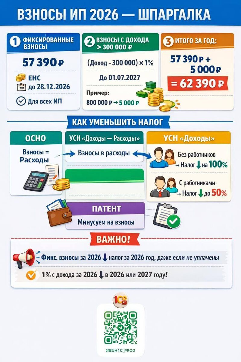 🙌 Ваши ответы — огонь, есть что обсудить 😉 📌 В пятницу опубликуем подробный разбор: разложим всё по полочкам и покажем логику расчёта. А сегодня — без ожиданий и интриг: 🧾 наглядная шпаргалка по уплате взносов ИП за 2026 год — сохраняйте, чтобы было под рукой. Продолжаем разбирать сложное простым языком 💛 #1С #Бухгалтерия #КейсБухгалтера #Разбор1С #Голосование #ИП #ВзносыИП #ШпаргалкаБухгалтера #Обучение1С