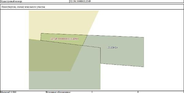 Название: Земельный участок, кадастровый номер 52:58:1000003:3549, площадью 947 кв.м., расположенный по адресу: Российская Федерация