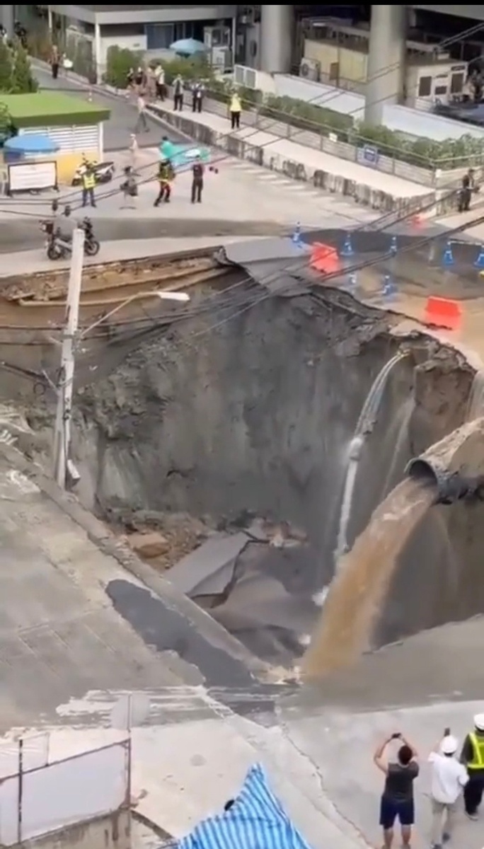 В Бангкоке, прямо посреди дня, асфальт в центре города неожиданно провалился в бездну вместе с всеми коммуникациями