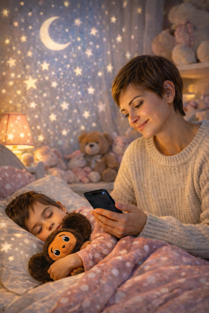 Я укладываю Дашу на кровать. Рядом крутится, едва слышно шурша, светильник. Он бросает на стены и потолок маленькие лучики, которые превращаются в звёздочки. Очень красиво: кажется, будто вокруг Млечный путь.