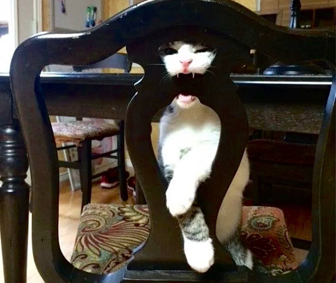 Мы часто говорим, что люди становятся неузнаваемыми, когда голодны. Но кто сказал, что кошки исключение? Эти пушистые создания обычно демонстрируют царственное спокойствие и грацию. Однако стоит лишь опоздать с ужином на пять минут, как из грациозного хищника они превращаются в нечто… совершенно иное! Сегодня мы собрали семь доказательств того, что голодный кот - это отдельный, немного пугающий, но бесконечно смешной вид. Когда хозяин игнорирует мои мольбы, я вынуждена искать любые доступные способы привлечь внимание. Я протиснулась сквозь спинку стула, и теперь мои клыки угрожающе торчат, призывая к немедленной подаче паштета! И я очень напряжена, ведь удерживать эту позу, пока я жду еду, это настоящий подвиг. Кто сказал, что коты едят только мясо? Когда голод действительно силён, можно попробовать и фрукты, лишь бы наполнить эту бездонный желудок! Я вцепилась в этот красный, сочный кусок арбуза, как настоящий хищник, которого лишили добычи целый день. Мои челюсти работают на предел