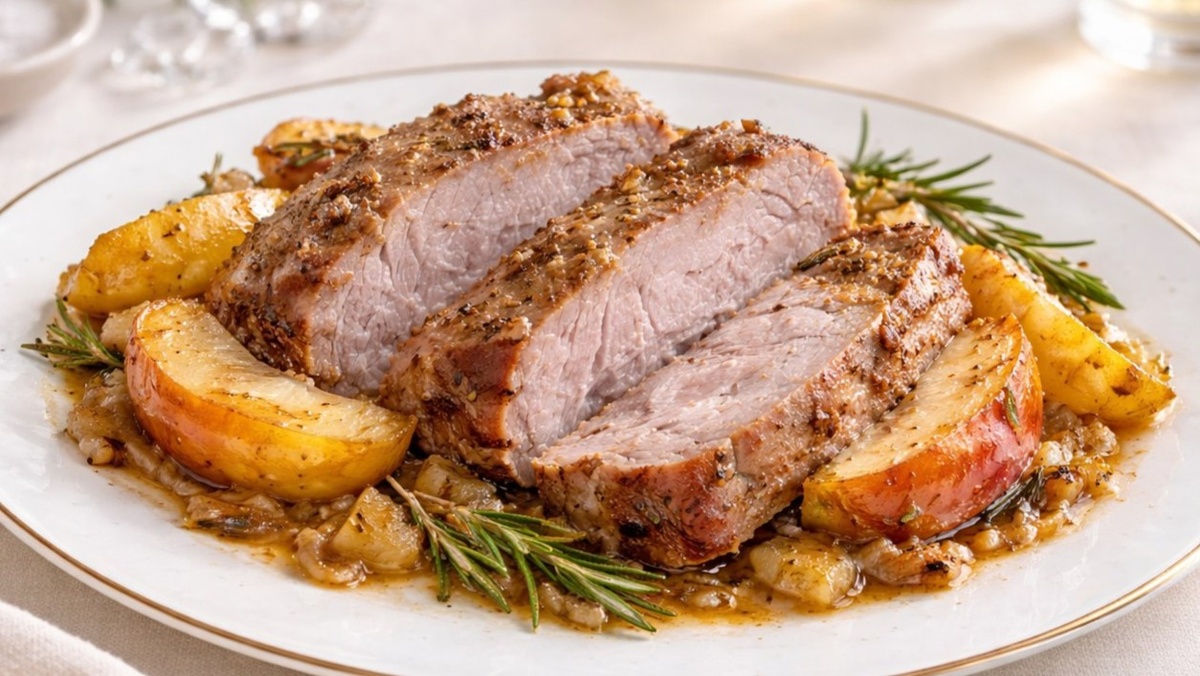 Минимум подготовки, мясо получается мягким и сочным, яблоки дают лёгкую кислинку и аромат. Рецепт подойдёт и для семейного ужина, и для выходного обеда, когда не хочется долго стоять у плиты.Что использовать : пергамент или рукав вместо фольги и как добиться румяной корочки, не пересушив мясо. Свинину промойте и обсушите бумажными полотенцами. Натрите солью и свежемолотым чёрным перцем со всех сторон.