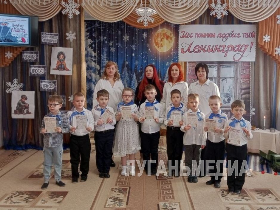 Мероприятие, посвященное 82-годовщине снятия блокады Ленинграда, прошло в ясли-саду компенсирующего специального вида «Золотой ключик» города Стаханова. Как рассказала заведующая дошкольным образовательным учреждением Оксана Блинова, орлята-дошколята подготовительной группы и дети старшего возраста познакомились с героической страницей российской истории ‒ 872-дневной блокадой Ленинграда. Она навсегда останется в народной памяти символом стойкости, мужества и силы духа. Ребята смотрели сценку «Один миг из жизни ленинградцев», читали и слушали стихотворения и песни. Кроме того, воспитатели провели нейроигры «Перенеси продукты» и «Воздушная тревога». Сотрудники и воспитанники почтили память погибших мирных жителей города на Неве минутой молчания. Кульминацией события стало вручение орлятам‑дошколятам сертификатов о прохождении трека «Орленок ‒ хранитель исторической памяти», а старшим ребятам ‒ памятных браслетов. По словам старшего воспитателя Оксаны Мовы, цель мероприятия заключается в