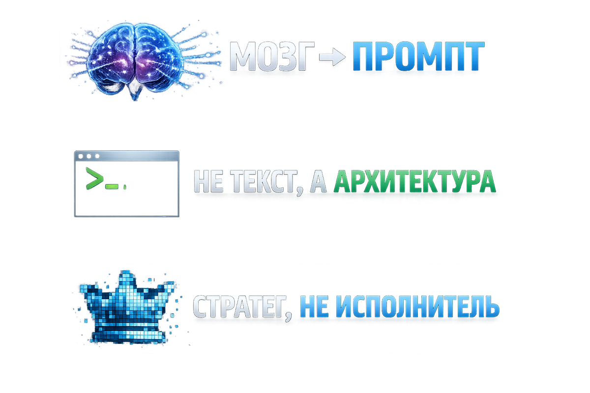 Я нашел способ, как перестать быть расходным материалом и стать стратегом. Если вы до сих пор вручную пишите посты и настраиваете кампании — эта статья ваш чек-лист на выживание. Или прощальное письмо профессии. 1. Алхимия вместо копипасты: как я заставил нейросеть генерировать не текст, а смыслы Все думают, что ChatGPT — это продвинутая печатная машинка. Это ошибка, которая оставляет вас без работы. Моя главная находка года — промпт-архитектура. Я не прошу: «Напиши текст о SEO». Я создаю цифрового сотрудника: