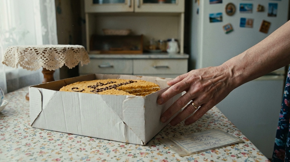 Марина посмотрела на коробку. Белая глазурь, шоколадная надпись. Торт оплыл, пока мы говорили, — но всё ещё выглядел красиво.