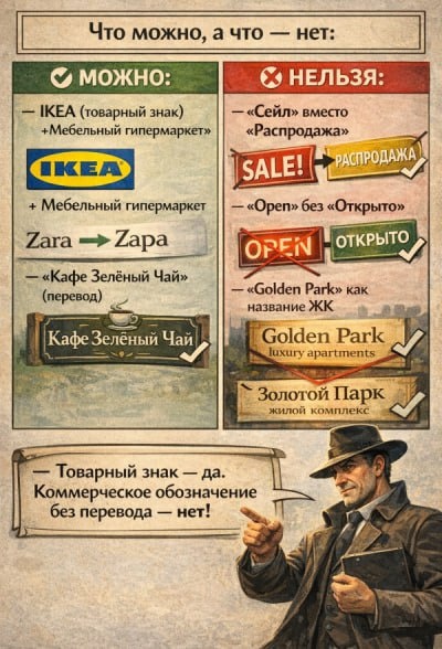 С 1 марта вступает в силу Федеральный закон о защите русского языка, а также запрет на использование иностранных слов в рекламе. Главное о новом законе для рекламы и бизнеса Sostav рассказал Михаил Какоба, юрист в Adspector: ▪️ Вся информация, предназначенная для публичного ознакомления потребителей — включая вывески, указатели, таблички, меню, прайс-листы, надписи типа «open/closed», «sale», «coffee», «menu» и тому подобное — должна быть выполнена на русском языке. Простая транслитерация (например, «сейл» вместо «распродажа») не считается соответствием требованиям — требуется именно русский эквивалент по смыслу. ▪️ Использование иностранных языков разрешено только при условии дублирования на русском языке: тексты должны быть идентичны по содержанию, равнозначны по размещению и техническому оформлению (цвет, шрифт, размер), звуковая информация — идентична по смыслу и способу подачи. ▪️ Требование о переводе не распространяется на: фирменные наименования, товарные знаки, знаки обслуж