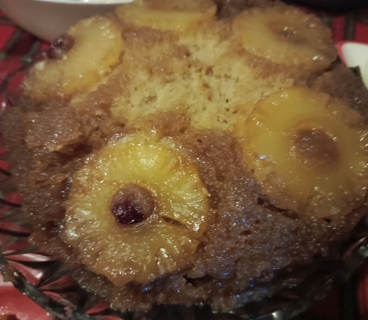 В форму для запекания выкладываем бумагу для выпечки. На дно формы выкладываем карамельную заливку. Сверху выкладываем кольца консервированного ананаса. В центр каждого