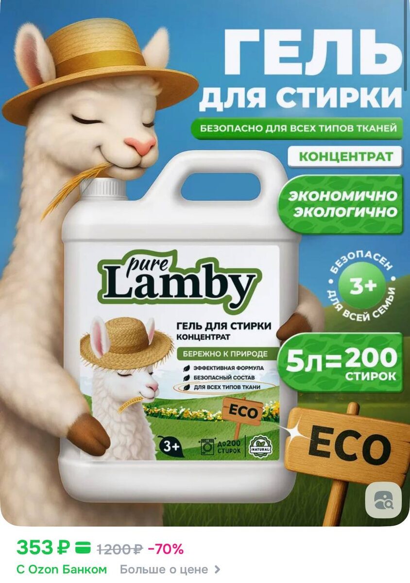 😀😀😀Гель для стирки 5 литров концентрат Pure Lamby гипоаллергенный / Гель для стирки эко
