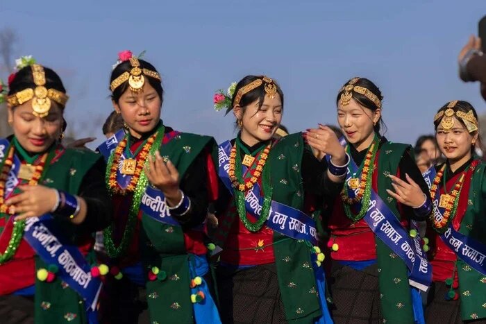 Катманду, Непал. Группа коренных жительниц из общины Гурунг, в традиционной одежде, выступают во время новогоднего фестиваля "Таму Лосар". Фотография: Нарендра Шрестха.