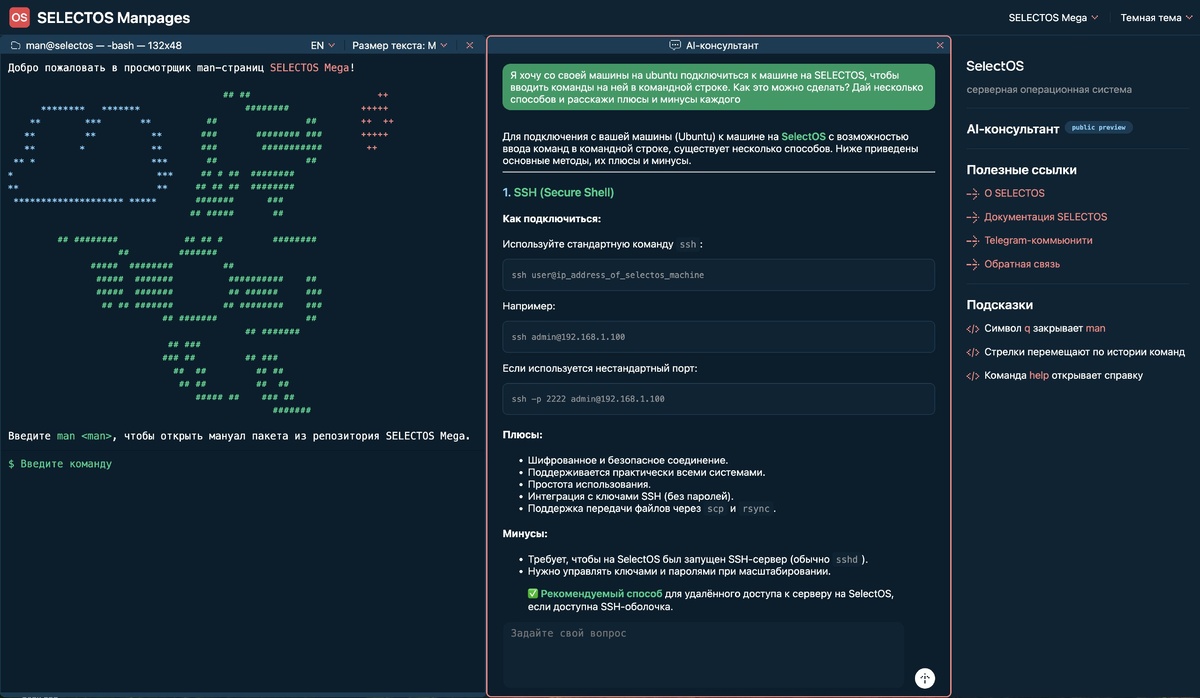 📝 Кратко: Привет, Хабр! Selectel открыл доступ к бесплатному AI-консультанту для работы с серверной операционной системой SELECTOS. Больше не нужно бегать за сеньором, чтобы получить ответы на базовые вопросы.AI-консультант работает с документацией SELECTOS и манами в составе репозитория, поэтому может быть полезен и для работы с другими форками Debian. Читать далее 🔗 Читать оригинальную статью (ссылка) 📊 Источник: Habr ⏰ Время: 28.01.2026 09:46 📱 Другие каналы: 🪙 ВКрипту | 🎮 ВИгрухи | 🏎️ ВТачки | ✈️ ВТравелу #gadgets #гаджеты #технологии