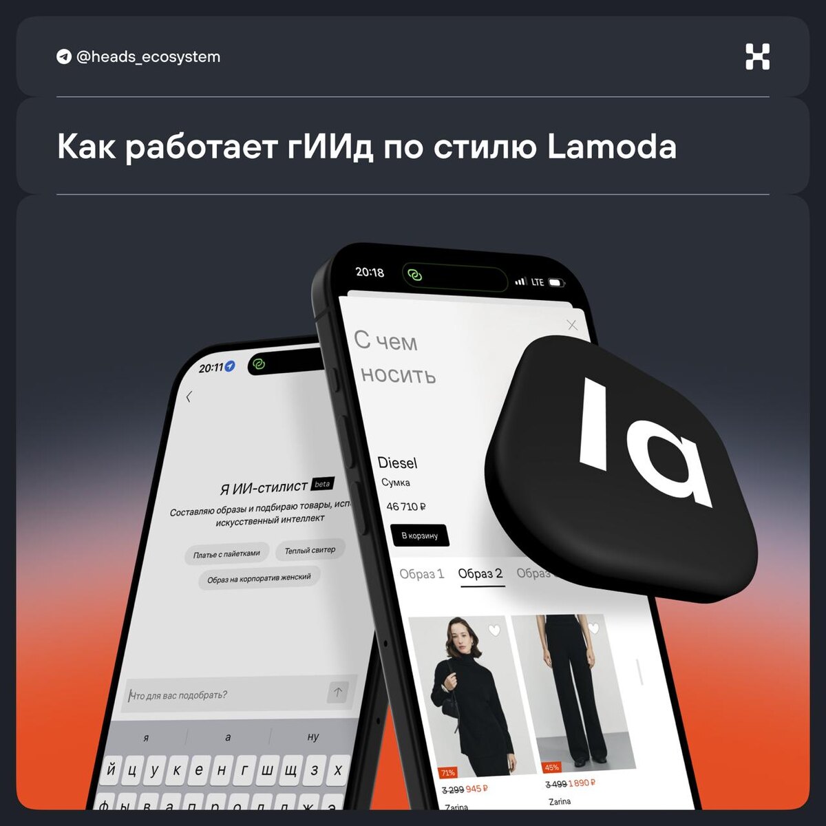 В приложении появились AI-инструменты для подбора одежды и работы со стилем. Они помогают искать вещи по фото и собирать образы. По сути, это персональный фешн-ассистент вокруг каталога Lamoda. Что он умеет? 📌Подбирать одежду и образы в диалоге с помощью ИИ-стилиста 📌Показывать, как вещи сидят на человеке 📌Предлагать готовые образы для товаров из каталога и прошлых заказов 📌Находить похожие вещи по фото и скриншотам Судя по всему, Lamoda меняет позиционирование, и теперь это не просто маркетплейс. Это гид, который поможет разобраться, что с чем носить, и собирать гардероб так, чтобы вещи не лежали без дела. Как это работает? Листайте карточки➡️ © Heads and Hands — студия разработки цифровых экосистем В этом посте есть большое видео, которое не загрузилось в Дзен. Откройте оригинал поста в телеграме, чтобы его посмотреть