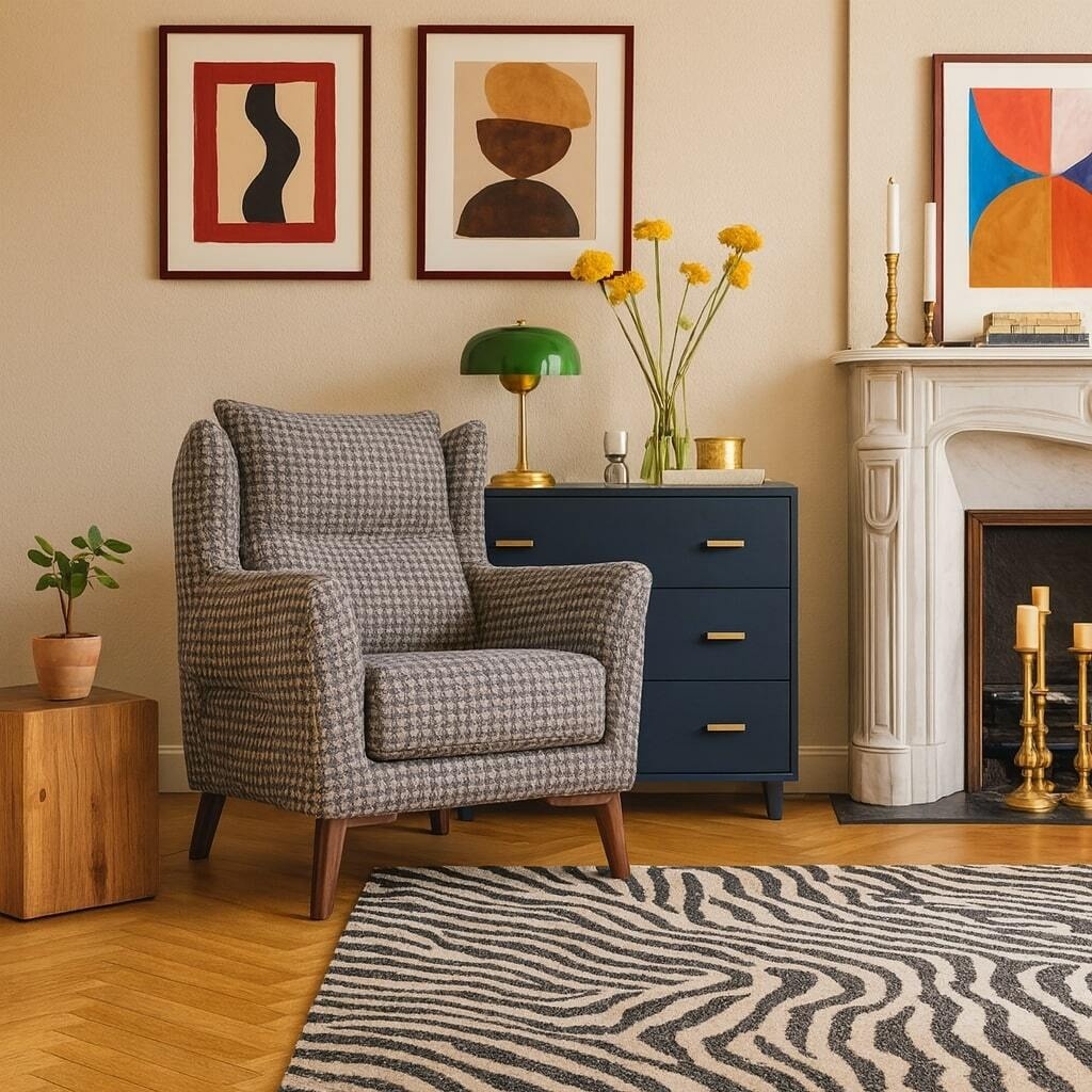 Бренд So'Home постоянно обновляет коллекции мебели, текстиля и декора для создания стильного и комфортного дома. В статье рассмотрим некоторые новинки дизайнерской мебели, которые появились в январе. Одна из новинок — мягкое кресло с подлокотниками и высокой спинкой. Оно подарит настоящий комфорт при просмотре фильма или чтении книги. Форма и принт “гусиная лапка” отсылает к ретро-стилю, который сейчас на пике популярности. А деревянные ножки обеспечивают устойчивость, и при этом добавляют легкости дизайну. Кресло в стиле ретро Стильное решение для гостиной — стеллаж с открытыми полками, что добавляет “воздуха” в интерьер. Он поможет дополнить стиль пространства и показать индивидуальность: на нем можно расположить декор или значимые вещи, например, журналы, фоторамки, виниловые пластинки, статуэтки. Советуем соблюдать баланс в декоре, чтобы не создавать визуальный шум. Стеллаж с открытыми полками Современный обеденный стол украсили дизайнерской деталью: прочными ножками необычной форм