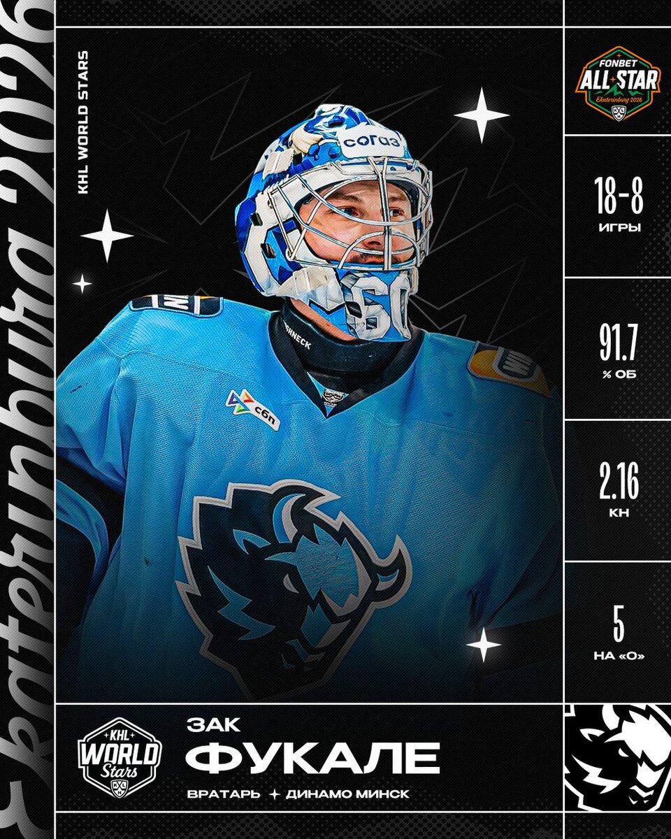 Один из топов лиги по количеству «сухих» матчей Зак Фукале 🦬 во второй раз в карьере покажет свою надёжность на Фонбет Матче Звёзд КХЛ