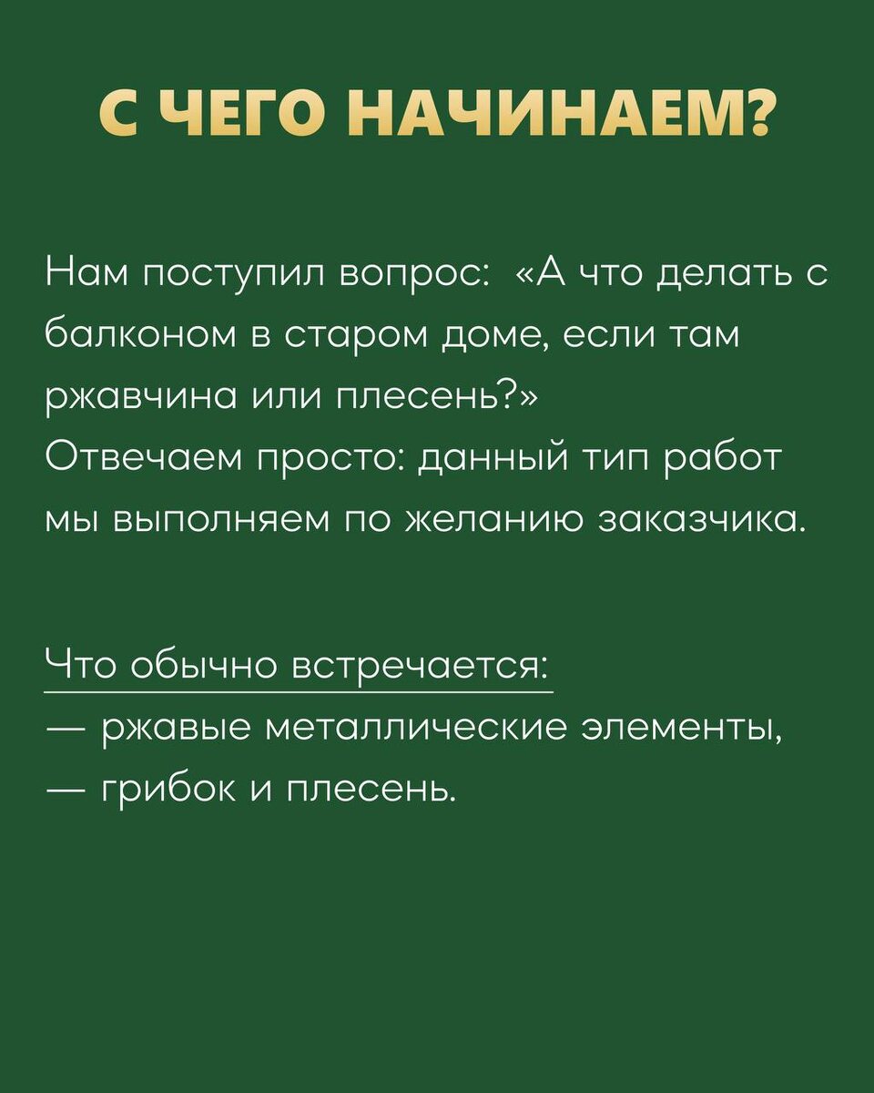 ? Не переживайте — мы знаем, что с этим делать! 😉 Мы подготовили для вас слайды с полезной информацией о том, как вернуть такому балкону аккуратный вид. Смотрите, сохраняйте и пишите нам, если хотите, чтобы всё сделали профессионально и с гарантией 🫶