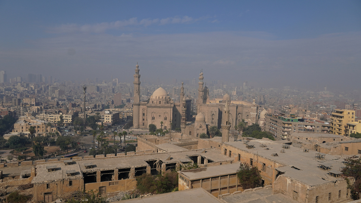 Прямиком из отеля, вместе с супругой и нашим гидом Мухаммедом, мы направились в каирскую Цитадель. Первый кирпич будущей крепости в 12 веке заложил знаменитый визирь Саладин, прославившийся яростным сопротивлением в битвах с крестоносцами. Идея постройки крепости была простая: "Если город взбунтуется, я должен быть выше". И действительно оказалось, что Цитадель - лучшее место, чтобы взглянуть на Каир с высоты птичьего полёта. Однако мне не очень повезло с видом, так как ветер поднял песчаную взвесь в воздух и город находился в дымке.