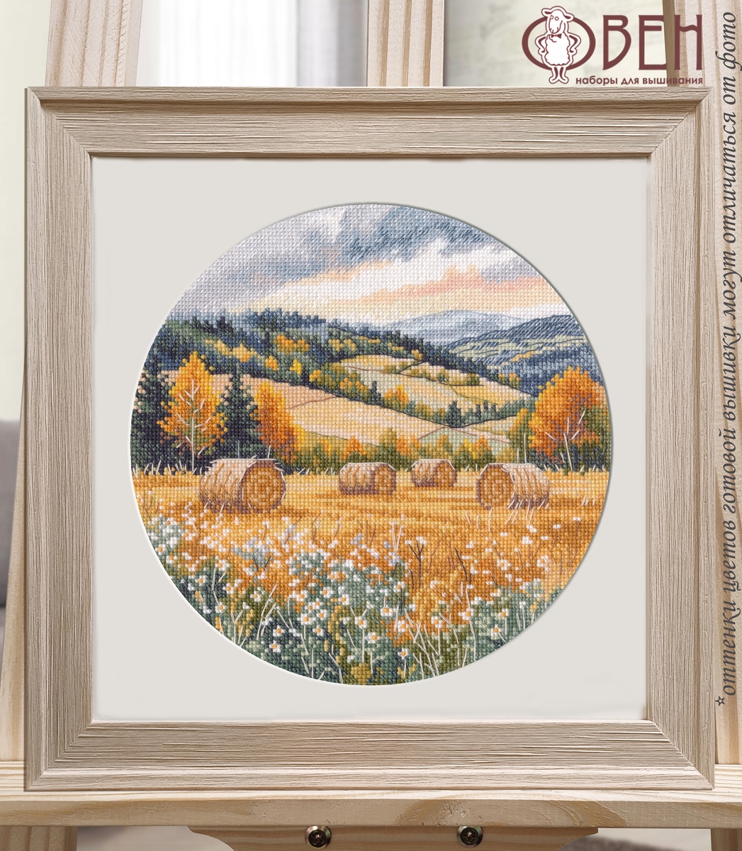 Всем большой вышивальный привет! Анонсировала фирма "Овен" тут новинку - набор арт. №1722 «Эхо уходящего лета». Размер вышитой работы - 20х20 см. Вышивается в 2 нити, 24 цвета ПНК им. Кирова. Канва 16-го каунта, белого цвета. И указала, что основой для разработки стала картинка, созданная искусственным интеллектом. И тут же на бедную фирму посыпались плюхи о том, что "мало им нормальных иллюстраций", "столько хороших художников", "Зачем свой ИИ еще и в вышивку вносить, надоел и так", "как Овен так опустился".. Тут же в комментариях появилась куча экспертов, которые с первого взгляда на картинку поняли, что она от ИИ... Ой, не знаю уж, как эти люди, у которых "глаз-алмаз" поняли, что не по иллюстрации настоящей это сделано, я вот не поняла. Ни с первого, ни со второго раза.. То, что стога все одинаковые - так они и должны быть одинаковые, их делает техника, а не руками сматывают)). Я видела такие совершенно одинаковые стога в поле собственными глазами. То, что сзади поля расчерчены -