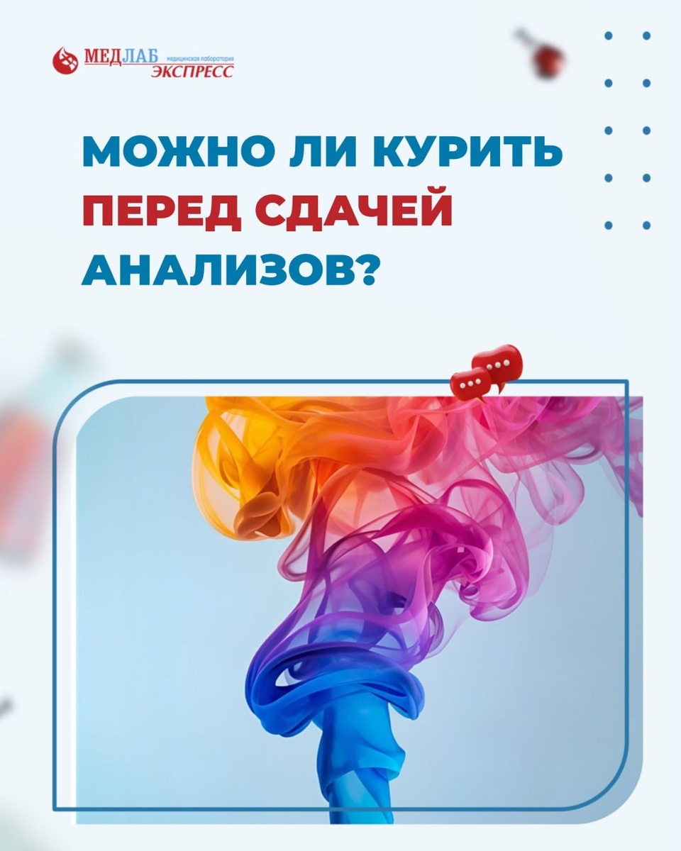 ? На самом деле, даже пассивное курение заметно влияет на показатели анализов! Когда человек курит (или использует вейп), в организм поступают никотин и другие вещества. В ответ организм испытывает стресс: 🔹 Повышается уровень гормонов стресса (например, адреналина и кортизола) 🔹Повышается свертываемость крови 🔹Меняется уровень глюкозы и инсулина 🔹Изменяются показатели липидного обмена (холестерин, триглицериды) В итоге, анализ крови уже не отражает ваше обычное состояние организма. Результаты могут быть искажены — а это значит, что врач получит не совсем достоверную картину. Не говоря о том, что важные диагнозы могут быть пропущены или, наоборот, назначено ненужное лечение. Рекомендуется полностью воздержаться от курения (в том числе вейпов!) минимум за 12 часов до сдачи анализов. Берегите себя!