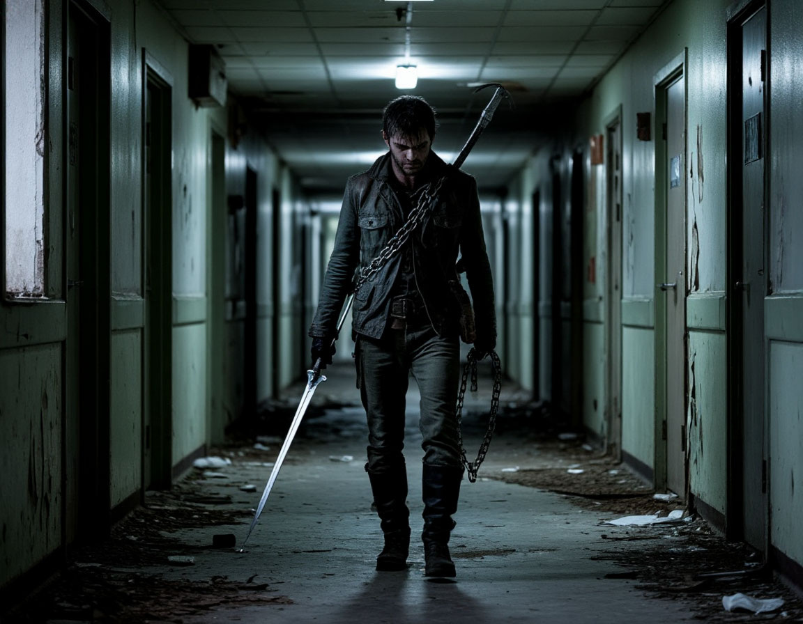 Алекс вошёл в заброшенную больницу на рассвете, когда серые стены ещё не успели проглотить первые лучи. Холодное оружие - серебряный клинок, гарпун с цепью - было наготове. Огнестрел здесь был бесполезен, он это знал.