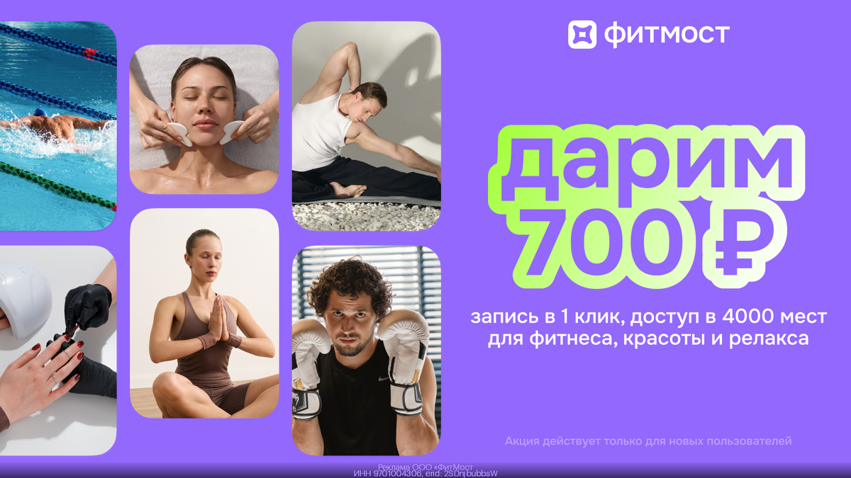 Фитмост: скидка 700₽ на фитнес, бьюти и релакс💆♀️