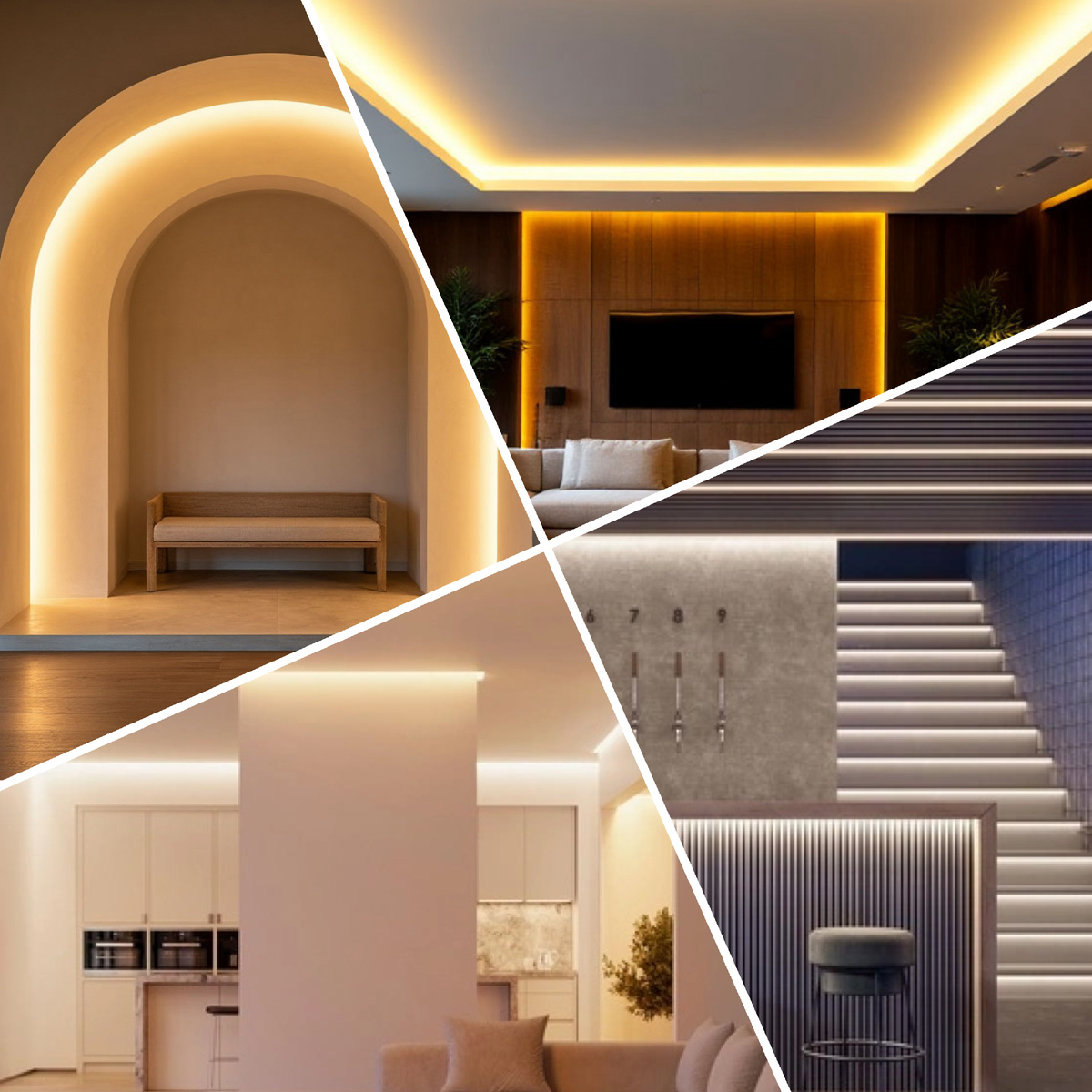 - Что получится: чистая, ровная светящаяся полоса, которая выглядит как часть архитектуры, а не как добавленная деталь. Свет при этом может мягко рассеиваться, создавая легкое свечение вокруг линии.