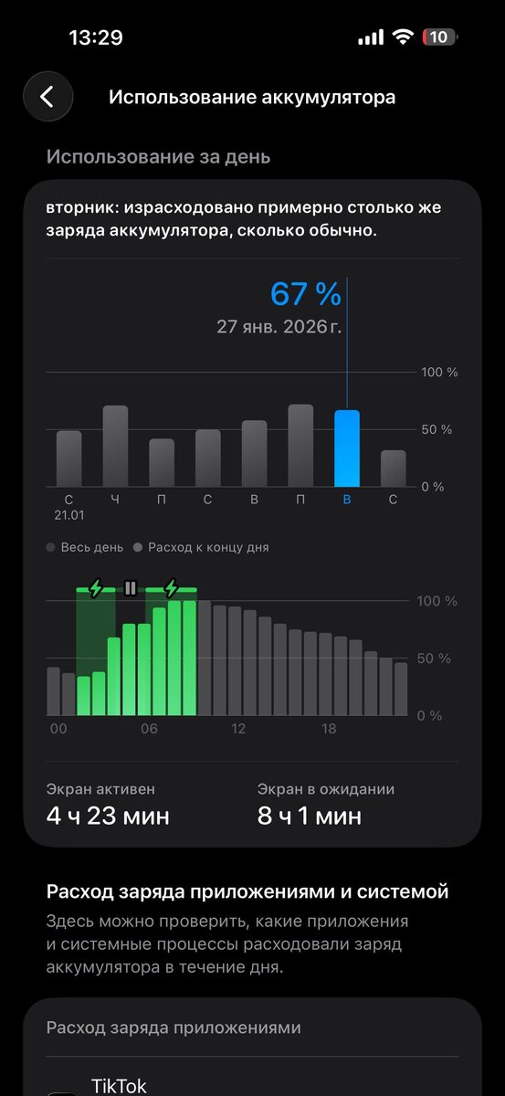 Статистика аккумулятора на iOS 26.3 Beta 3