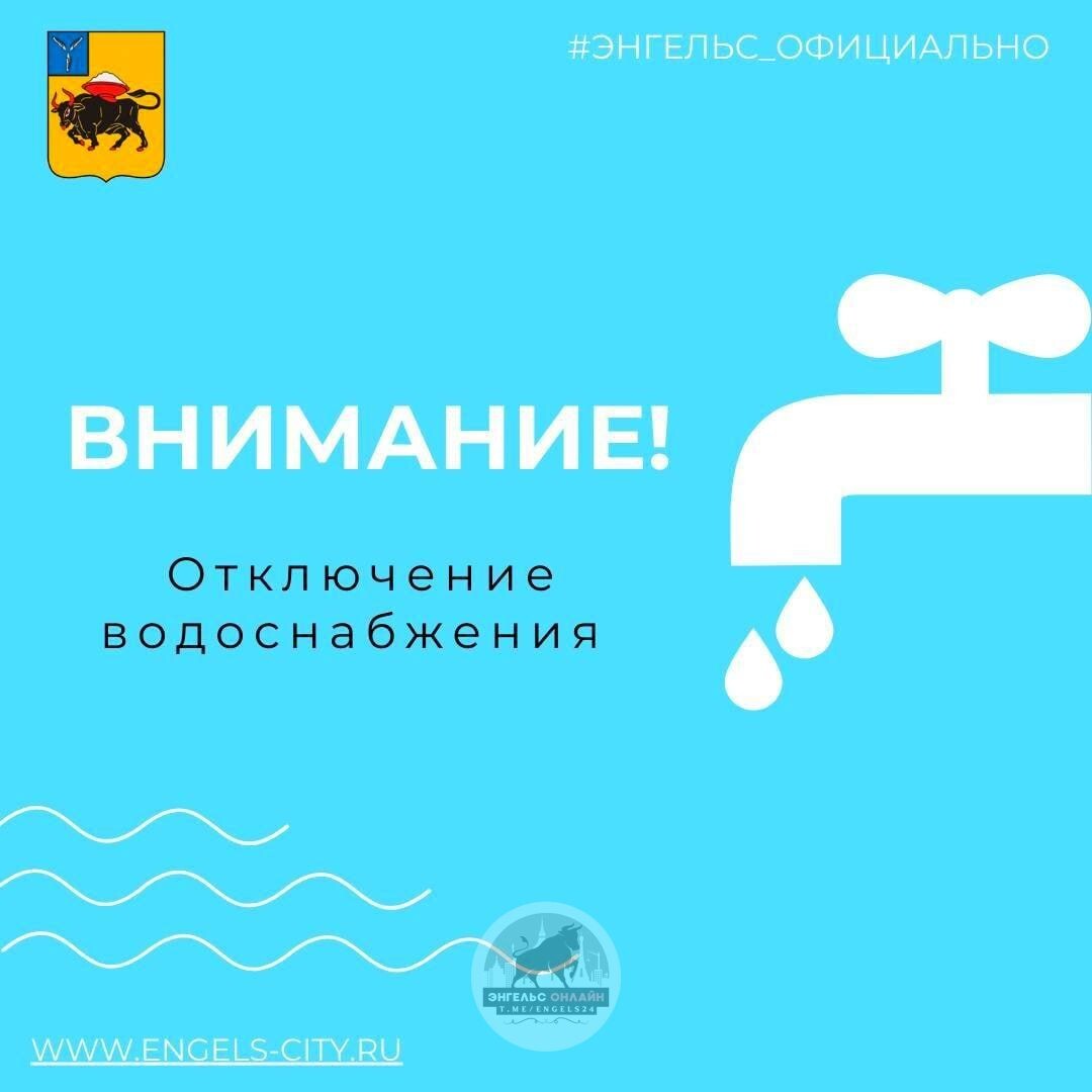 Уважаемые жители! Информируем вас о временном отключении водоснабжения 28 января 2026 года в связи с производством плановых работ по адресу: ул. Черепичная, д. 8. Время проведения работ: с 14:00 до 18:00 (ориентировочно) Адреса, где будет отключено ХВС: 🔹ул. Луговая 🔹ул. 2-я Луговая 🔹ул. Черепичная 🔹ул. Ветеринарная 🔹ул. Новоузенская 🔹ул. Проезжая 🔹ул. Верхняя Приносим извинения за доставленные неудобства! Круглосуточно доступны Аварийно-диспетчерская служба МУП "Энгельс-Водоканал" 8(8453) 95-27-88, 8(8453) 52-69-95 Единая дежурно-диспетчерская служба (ЕДДС) 56-71-29 и 95-42-23. ▫️ЭНГЕЛЬС ОНЛАЙН ▪️САРАТОВ ОНЛАЙН 🇷🇺 Мы в мессенджере MAX