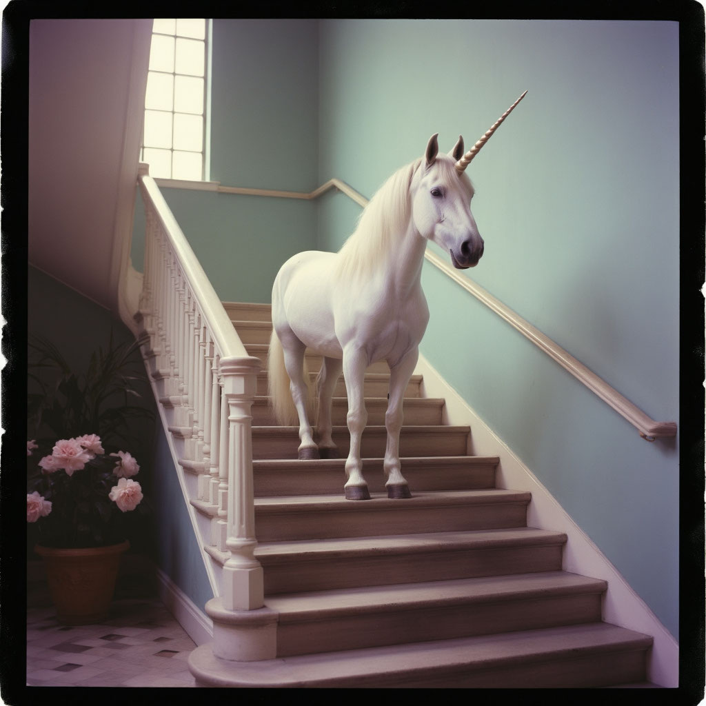 В пролёте между этажами, там, гдеш обычно скапливается полумрак, стоял единорог.