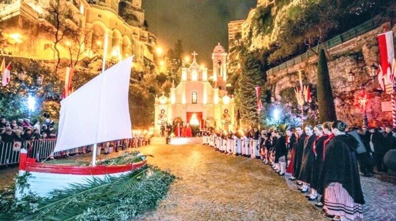 Ежегодно в конце января в Монако отмечается Национальный праздник. Праздник Святой Девоты — древняя традиция в Монако, отмечаемая 26-27 января в честь покровительницы княжества и дома Гримальди. Главные события включают сожжение символической лодки на берегу порта Эркюль вечером 26 января, торжественные мессы и процессии, проводимые в присутствии Княжеской семьи, символизируя защиту государства. Праздник посвящён Святой Девоте — покровительнице Монако и дому Гримальди. В ночь перед праздником проходит церемония сожжения символической лодки в память о святой мученице Девоте. Согласно легенде, в 4 веке нашей эры, во время гонений на христиан на Корсике, молодая девушка по имени Девота не отреклась от своей веры и была уbита. Ее друзья тайно отправили тело Девоты на лодке в сторону Африки, надеясь, что в других землях ее похоронят по христианским традициям. После морского шторма из тела девушки вылетел голубь, который направил лодку в Монако — на место нынешней церкви Святой