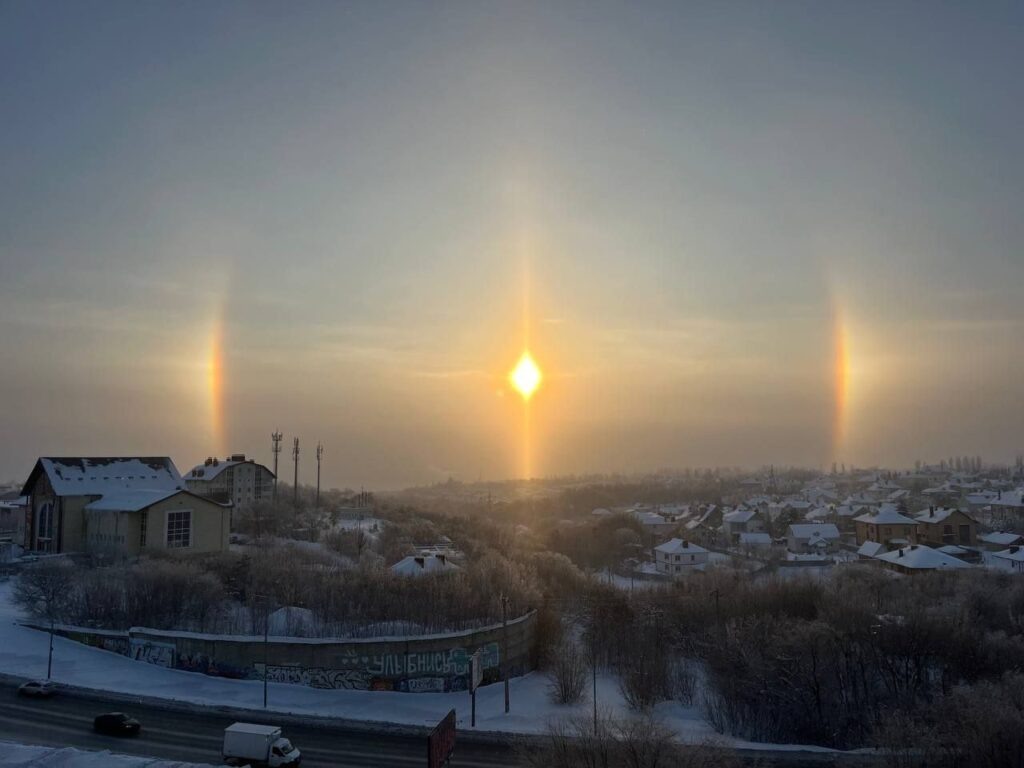 Сегодня утром Саратов увидел невероятное небесное шоу. Многие из вас наблюдали и делились кадрами яркого солнечного гало с двумя «ложными солнцами» — паргелиями, — написал он в своем телеграм-канале.