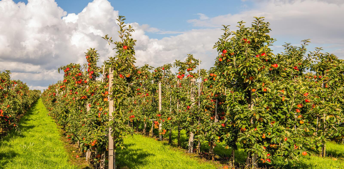 - Площадь: В 2021 году была произведена высадка и внедрение системы капельного полива плодовых деревьев на площади в 20 га, к 2025 году планируется увеличение площади сада до 100 га. На 1га площади было высажено 1100 деревьев по схеме 4,5*2 м.