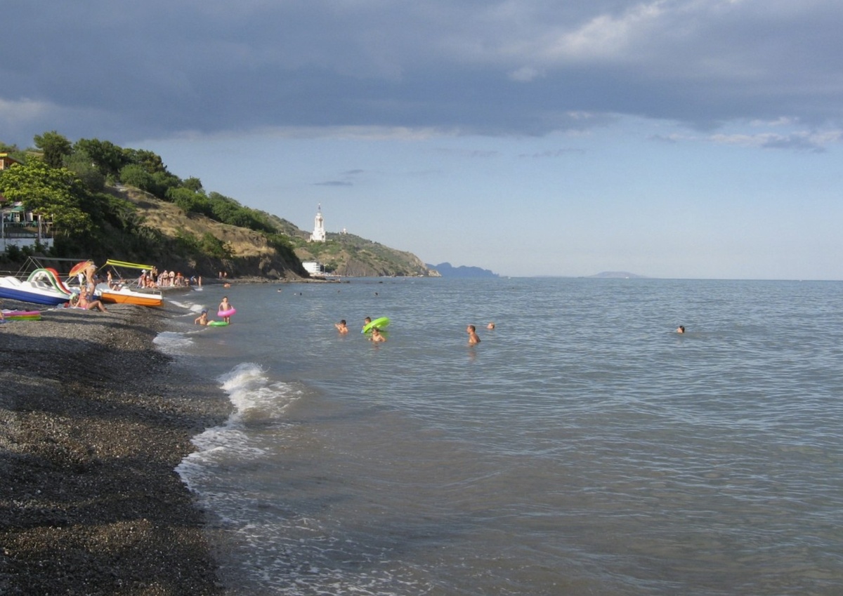 Про маршруты. Если идти вдоль берега, то можно дойти до Малореченского. Мы шли почти два часа. Я с подругой шла, её зовут Лена, она в Крыму живёт давно и сказала, что этот маршрут один из самых красивых. По пути руины какие то, прям остатки бетонных построек, кто что строил вообще, неясно. Бухточки мелкие, где никто не купается. А в конце пути храм маяк святого Николая. Его видно издалека, белый такой, узорчатый. Внутри есть музей катастроф на воде, но мы туда не заходили, потому что Лена не любит такие места.