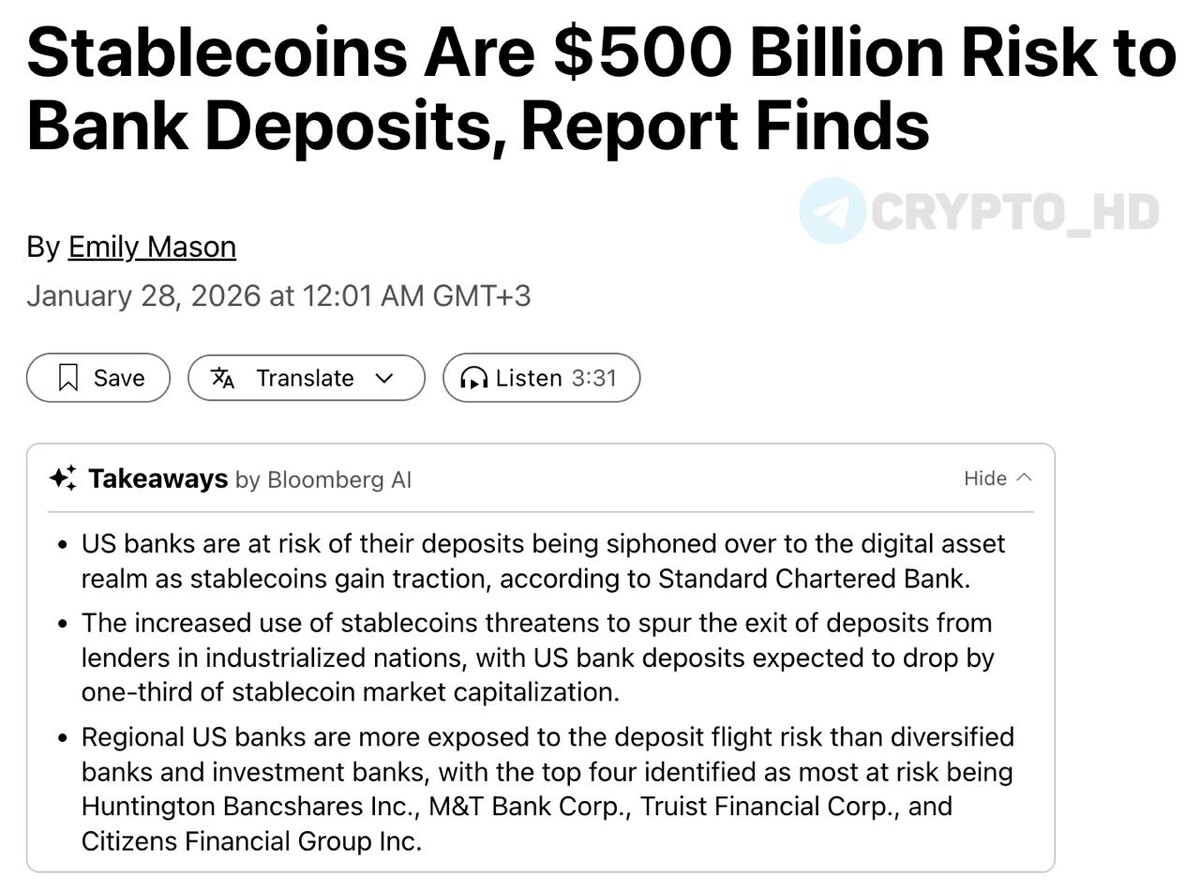 💸 Стейблкоины угрожают банкам оттоком $500,000,000,000 из депозитов