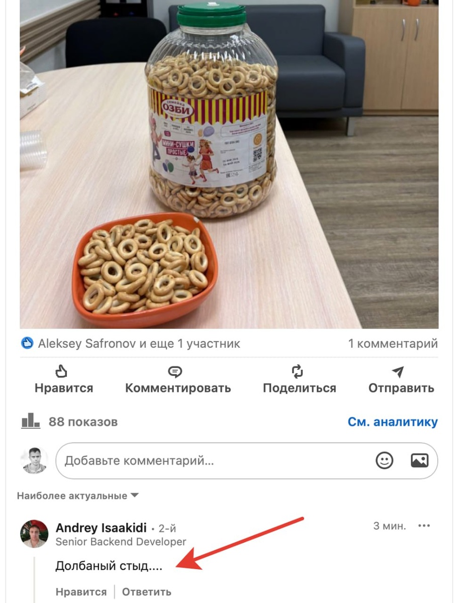 Написал шутливый пост, что мы (дабы сэкономить бабульки) купили ведро сушек и кормим ими программистов и т