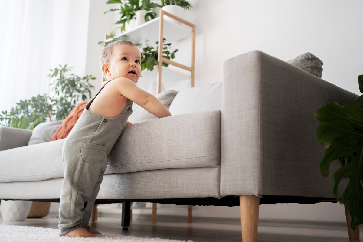 Еще один источник риска — неустойчивые предметы интерьера. Проверьте, насколько прочно стоит каждая тумба, комод или стеллаж, и при необходимости закрепите их к стене специальными креплениями. Также стоит заранее защитить острые углы столов и полок мягкими силиконовыми накладками — это смягчит удар для малыша, который только учится ходить и часто теряет равновесие.