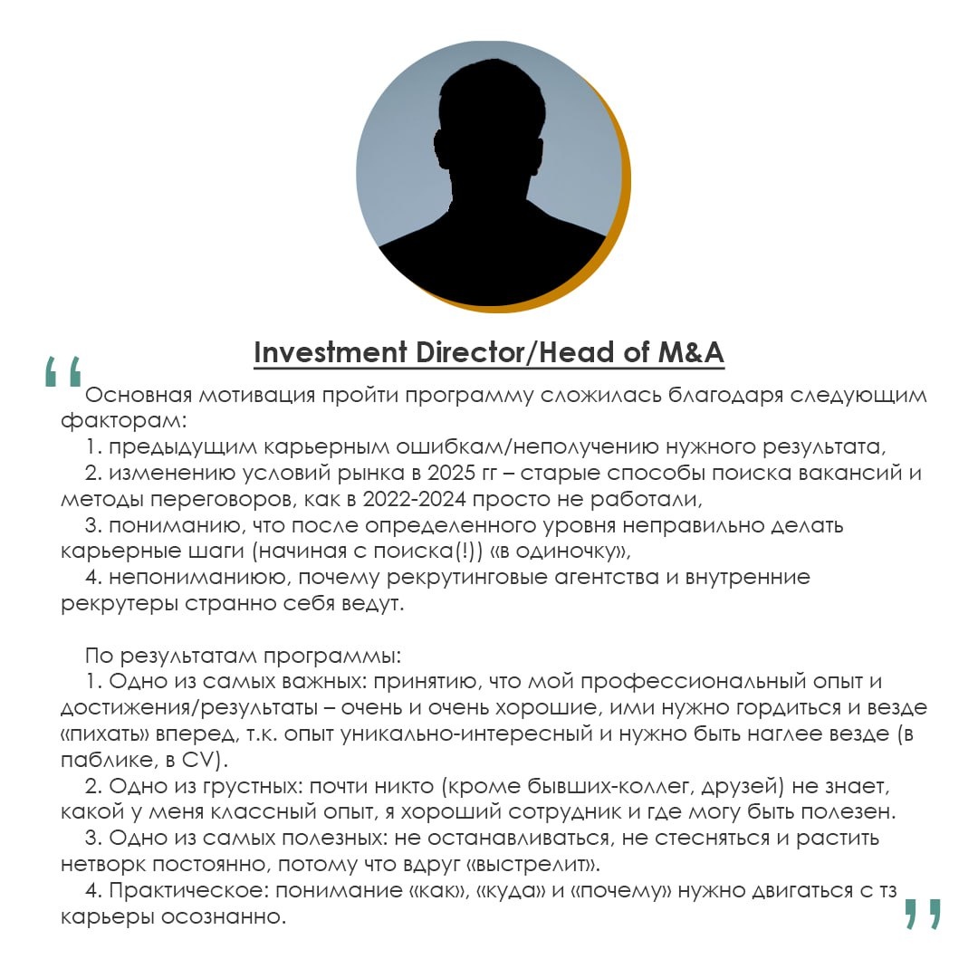 » Это цитата из отзыва в моей Карьерной группе. ☝️Человек с 15+ лет экспертного опыта в сложных проектах. С измеримыми результатами. С управленческими победами. Но почти никто на рынке не знал о его ценности. Почему? Потому что он сам не транслировал её эффективно. Проблема, которую я вижу постоянно: Рынок не читает между строк. Собственник не поймёт масштаб ваших достижений, если в резюме написано: «Управлял департаментом в условиях реструктуризации» Хедхантер не оценит вашу стоимость, если на встрече вы говорите: «Выполнял стандартные управленческие задачи» Вы не артикулируете ценность — и проигрываете тем, кто умеет говорить на языке. Почему это происходит? Вариантов много, но я покажу только 3 шаблона мышления, которые вам могут мешать! #отзывы #CareerCamp