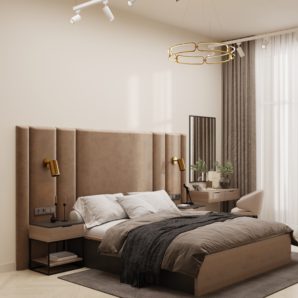 Чтобы главная комната отдыха дарила ощущение уюта и восстановления сил, надо грамотно её обустроить. Делимся советами из практики Renovation Club, как создать спальню-телепорт в моменты счастья. Иногда кажется, что в интерьере спальни сложно фантазировать. Условно, есть устоявшиеся шаблоны «кровать посреди комнаты» и «сбоку шкаф» — вот и всё, больше места нет. Хоть квадратные метры и диктуют свои правила, хозяева, как главные сценаристы своего дома, могут внести ясный комментарий. И наша команда в этом деле всегда помогает. ▪️Правильная расстановка мебели в спальне начинается тогда, когда владельцы заранее продумывают свободное перемещение по комнате. Между мебелью должно оставаться достаточно пространства для комфортного прохода. Это, как правило, около 80 см. Если у вас небольшая спальня, рекомендуем рассмотреть положение кровати не в центре комнаты, а вдоль стены. Здесь несколько плюсов: •визуальное увеличение площади •экономия пространства •меньше уборки •возможность сделать широку