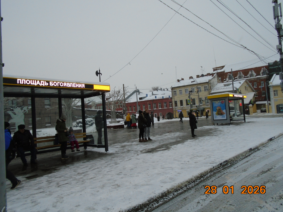 Иногда случается, что в столице появляется кляузник, т.е. Я, который распространяет кругом отраву. В стране Декретом 1918 года церковь была отделена от государства, школа от религии. Церковники пытаются приспособить религию к современным условиям, использовать более тонкие методы и формы воздействия на жителей в столице Золотого кольца. Религиозная идеология стремится оказать влияние на простых людей посредством морали и быта. Была в столице Золотого кольца площадь Подбельского. Кому помешал большевик Подбельский в Ярославле? Изменили название. См. фото. Если верить тому, что написано на новом остановочном комплексе, то сегодня это площадь Богоявления. Какое Богоявление? Чушь полнейшая. Когда отверзлись Небеса, на кого опустился Дух Святой в виде голубя? Может, на нового мэра Молчанова? Великий Ленин писал о необходимости вести неутомимую атеистическую пропаганду и борьбу. После революции 1917 года коммунисты гасили веру, разрушали церкви. Потом Отечественная война, в 1947году снова б